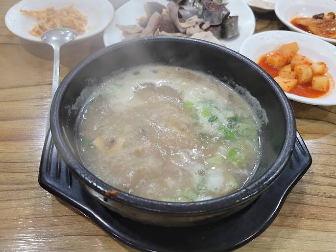 이 집의 가장 큰 장점은 최고 수준의 가성비와 맛. 다른 집 맛보기 수준의 8천 원짜리 순대 모듬을 주문하면 잡내 없고 부드러운 피순대와 오소리감투, 머릿고기, 간 등이 포함된 내장까지 내어주며 직접 돼지뼈를 우려내 만든 맑은 스타일 순대국 국물도 제공된다. 국물뿐 아니라 건더기까지 들어 있어 감동이었음.