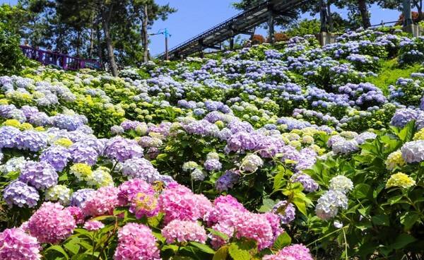 매년 여름이면 이곳에는 앤드레스 썸머, 쥬디, 베르나 등 약 40여 종, 3만 본 규모의 수국이 만개하여 오색빛깔의 아름다움을 선사하는데요, 울산에서 유일하게 열리는 수국 축제로도 잘 알려져 있습니다.