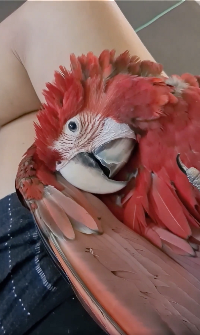 한 앵무새가 주인의 허벅지 위에서 등까지 대고 누워 깊은 잠에 빠진 모습이 포착되었습니다. 이 앵무새는 눈을 감았다 뜨기를 반복하며, 마치 사람처럼 편안하게 자는 모습을 보여주어 많은 이들의 심장을 녹였습니다.