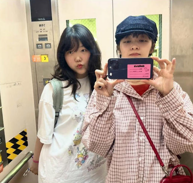 공개된 사진 속 두 사람은 일본의 한 엘리베이터에서 거울 셀카를 찍는 모습. 편안한 여행룩 차림으로 장난스러운 포즈와 표정을 선보이며 돈독한 우정을 과시했다.