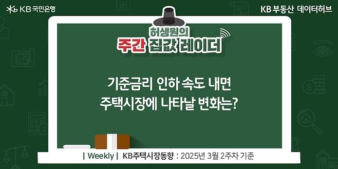 美 연준(Fed)의 1월 매파적 동결(연 4.25~4.50%)로 2회 인하가 지켜질까요? 2월 소비자물가지수가 2.8%로 예상보다 낮았고, 경기둔화 신호도 있어 3월 20일 동결된다면 5월 8일 의외의 결과도 기대됩니다. 한은의 기준금리 인하 횟수에 대한 시장 컨센서스는 2회이고, 연말 금리는 2.25%로 모아집니다. 물론 한미 금리차 1.75%p로 볼 때 디커플링이 장기화되긴 어렵지만, 내수침체 돌파도 필요해 남은 통화정책방향 결정회의 2회(4/17, 5/29)에 대한 기대치는 점증하고 있습니다. 여신금리에 영향을 주는 기준금리 인하가 부동산시장의 하방경직에 도움이 될 수 있겠습니다.