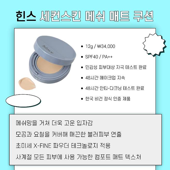 다음은 힌스의 세컨스킨 메쉬 매트 쿠션이야!