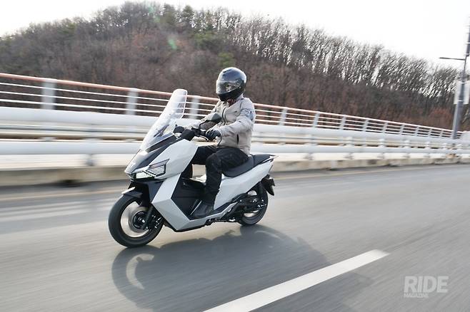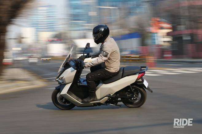 직접 타보니 의외의 성능에 깜짝 놀라게 된다. 최고출력은 125cc급이지만, 최대토크는 30Nm로, 300cc급 스쿠터와 비슷한 수준이기 때문. 스포츠 모드에서는 상당한 가속력을 보여주기 때문에 도심의 교통 흐름을 리드하기에 충분한 성능을 보여주는 건 물론이고 스로틀을 당길 때마다 차량 앞쪽의 무게가 가벼워진다는 느낌이 들 정도로 가속력이 뛰어나다. 이보다 한 단계 낮은 노멀에서는 125cc와 비슷한 가속을 보여주고, 에코에서는 50~80cc 정도의 가속을 보여준다. 물론 빠르면 빠를 수록 배터리 소모량이 늘어나는 만큼 자신의 주행 거리에 맞춰 모드를 적절히 조절해주는 것이 중요하다.