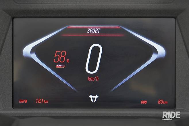 계기판은 TFT 풀컬러 스크린이 장착되어 주행 정보 및 차량 정보들을 전달한다. 전기 모터사이클인 만큼 시동이 걸려도 특별한 소리가 없으니 계기판을 통해 P, R, D 등의 표시로 주행가능한 상태인지를 보여준다. 주행모드는 스포츠, 노멀, 에코 3종이 제공되는데, 모드별로 계기판 화면과 함께 성능이 달라진다. 여기에 후진모드도 있어 별도의 변속 없이 오른쪽 핸들바의 R 버튼을 누르면 차가 저속으로 서서히 후진한다. 이 기능을 넣은 것은 배터리 등으로의 무게로 상황에 따라 여성이나 노약자의 경우 이동이 쉽지 않은 경우가 있기 때문이고, 전기 모터사이클이기 때문에 내연기관보다 구현이 쉽다는 점도 있다.