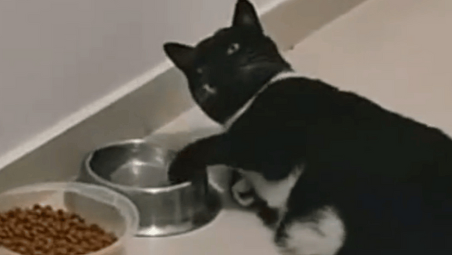 보통 고양이들은 물그릇 곁에 얌전히 엎드려 물을 핥아 마시는데, 한 애묘인의 고양이는 마치 특별한 '의식'을 행하는 듯한 모습을 보입니다.