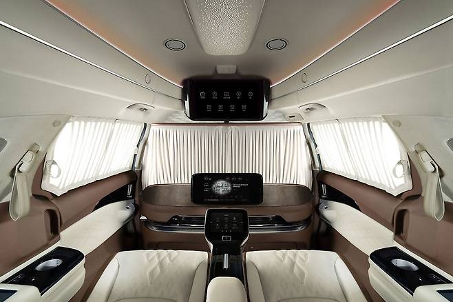 디 올 뉴 LM 500h의 넓은 실내 공간과 프라이빗함이다. 특히 전고가 1955mm에 달할 정도로 높아 성인 기준으로도 허리를 살짝만 굽혀도 내부에서 이동이 가능하며, 1열과 2열 사이에 48인치 울트라 와이드 디스플레이가 탑재된 파티션을 설치해 1열과 2열 공간을 확실하게 분리한 것도 작용한다. 또한 파티션 내부에는 엔진 소음과 대화 소리를 일정 수준 차단할 수 있는 흡음재를 배치해 프라이빗함을 더했다.