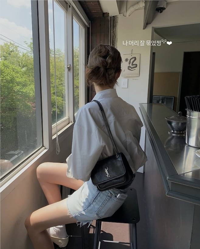 화이트 셔츠는 과하게 연출하지 않은 내추럴한 핏으로, 가볍게 소매를 롤업해 캐주얼한 무드를 더했고, 하의는 밑단이 자연스럽게 올 풀린 빈티지한 연청 데님 쇼츠를 매치해 활동성과 스타일을 동시에 챙겼습니다.