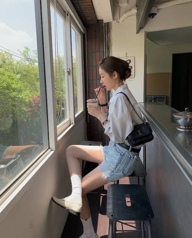 차정원은 '꾸안꾸'의 정석을 보여주는 셔츠+데님 쇼츠 조합으로, 간결하면서도 감각적인 분위기를 풍겼습니다.
