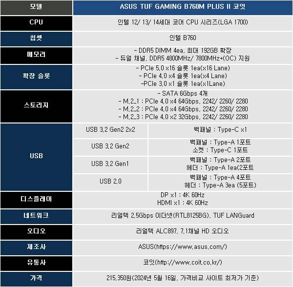 Z790급 실속형 고품질 메인보드, ASUS TUF GAMING B760M-PLUS II 코잇