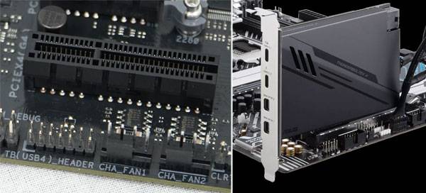 ASUS TUF GAMING B760M-PLUS II 코잇 메인보드의 PCIe 4.0 x4확장 슬롯 하단에는 썬더볼트 4 확장 카드 연결을 위한 헤더도 제공된다. 썬더볼트 4 규격의 확장 카드를 별도 장착해야 하지만 이를 통해 데이지 체인 방식의 모니터나 스토리지 확장을 지원하며, 썬더볼트 4는 5월 중순 발표된 인텔의 '썬더볼트 쉐어'도 지원하는 규격이다.
