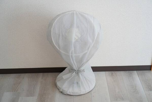 세탁소에서 받은 비닐커버는 선풍기 망에 딱 맞아 보관용으로 활용하기 좋습니다.