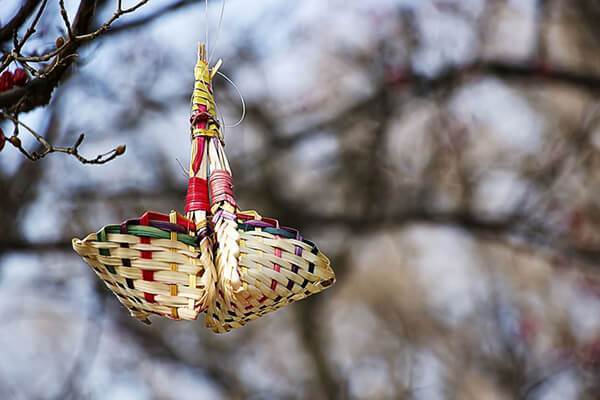 복조리는 대나무를 가늘게 쪼개서 엮어 만드는 소품으로, 원래는 쌀을 이는 기구다. 쌀을 일어올리듯이 복이 붙으라는 뜻에서, 알록달록하게 장식하기 좋도록 작고 예쁘게 만든 것이 바로 복조리다. 대나무를 엮은 틈새가 눈이 많은 것으로 여겨져, 광명을 통해 삿된 것을 물리치고 복을 불러들인다는 상징성도 담고 있다. 복조리는 설날 이른 아침, 섣달그믐날 밤 자정이 지나서 벽에 걸어둔다.
