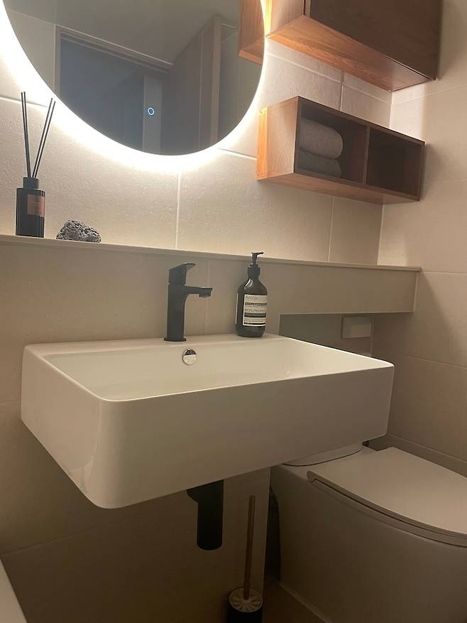 기본 느낌에서 타일, 도기 교체로 분위기 있어지고 예뻐졌습니다.