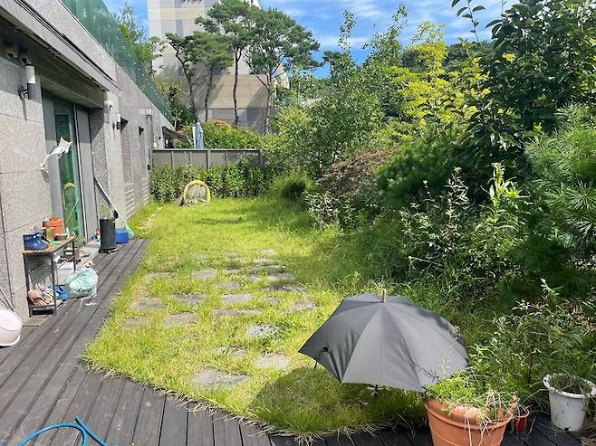 전 주인분께서 저희 부모님 세대셔서 그런지 정원 취향이 매우 달랐어요. 살릴 수 있는 건 살리고 싶었지만 결국 살릴 게 없다고 판단하여 전체 철거 후 새로 조경 공사를 하였습니다. 관리가 전혀 되지 않아 벌레 소굴, 잡초 천국이었어요.