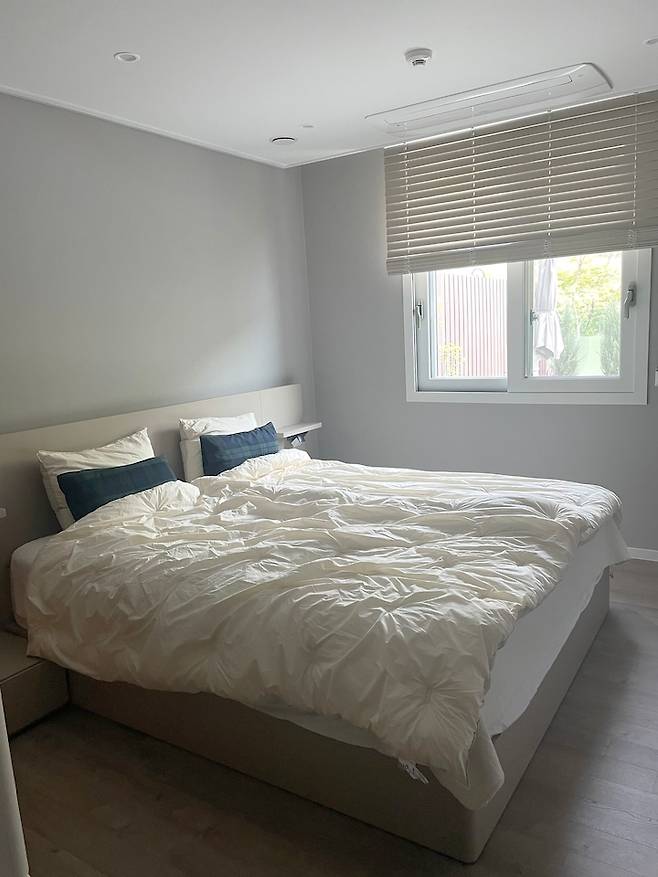 저희는 침실에서 정말 잠만 자기 때문에 이 집에 이사 오기 전에도 가장 작은방에 침대만 놓고 생활을 했었어요. 생활방식을 그대로 옮겨와 라지킹 사이즈 침대만 하나 놓고 생활하고 있습니다.