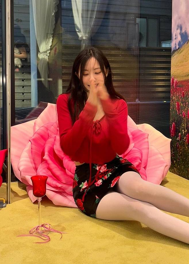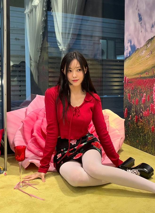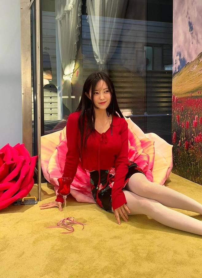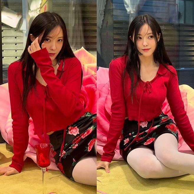 그룹 티아라 효민이 꽃무늬 미니 스커트와 샛빨간 블라우스의 봄 페미닌룩으로 사랑스런 인형 미모를 발산했다.