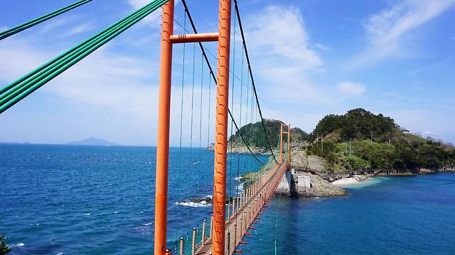 무엇보다 이곳은 경남 해안 최초로 섬과 섬을 연결한 출렁다리라는 점에서 더욱 의미 있다. 육지와 떨어진 두 섬을 단 한 걸음에 넘나들 수 있다는 사실만으로도, 여행의 목적지는 이미 충분히 정해진 셈이다.
