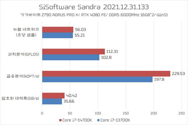 뉴럴 네트워크(AL/ML) 성능은 거의 동일하지만, 그외 작업에서는 약 10%에서 16%까지 코어 i7-14700K가 더 나은 성능을 제공하는 것으로 확인된다.