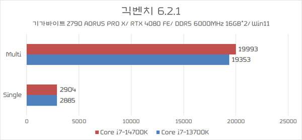 그렇다면 기존 동급 모델인 코어 i7-13700K와 비교해 어느 정도의 성능 차이를 내줄지 점검해 보자.