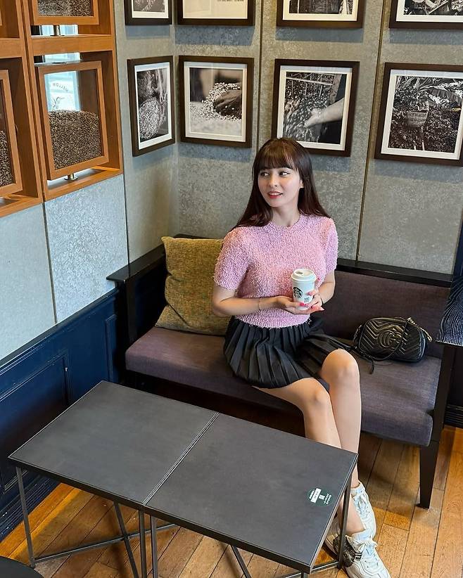 구잘의 인스타그램 속 따뜻한 카고시마의 분위기와 어우러진 데일리룩이 눈길을 끈다. 감각적인 인테리어의 카페에서 커피 한 잔을 들고 앉은 그녀의 모습은 마치 한 장의 감성 화보 같다. 구잘은 핑크 컬러의 텍스처 니트와 블랙 플리츠 미니스커트 조합으로 러블리하면서도 세련된 하이틴 무드를 완벽히 구현해냈다.