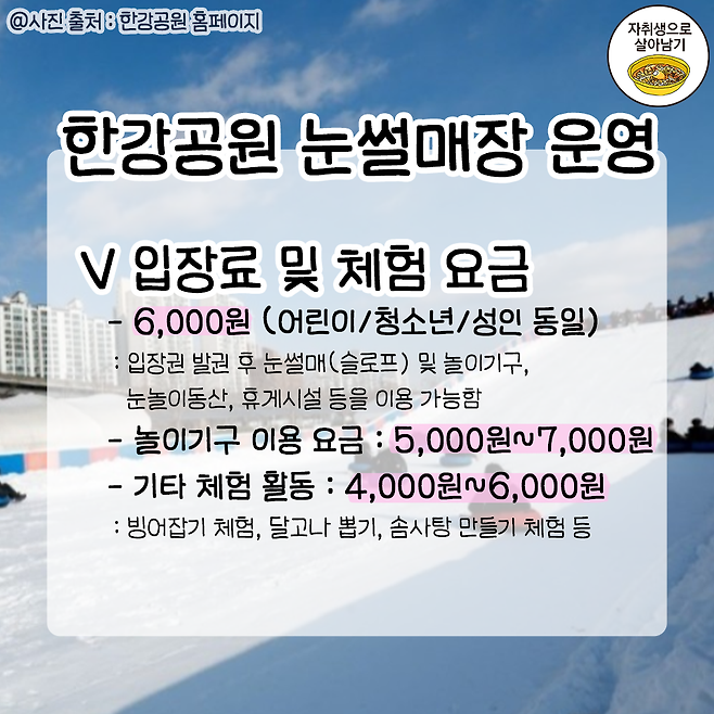 올 겨울 한강공원에 개장한 눈썰매장 정보!
