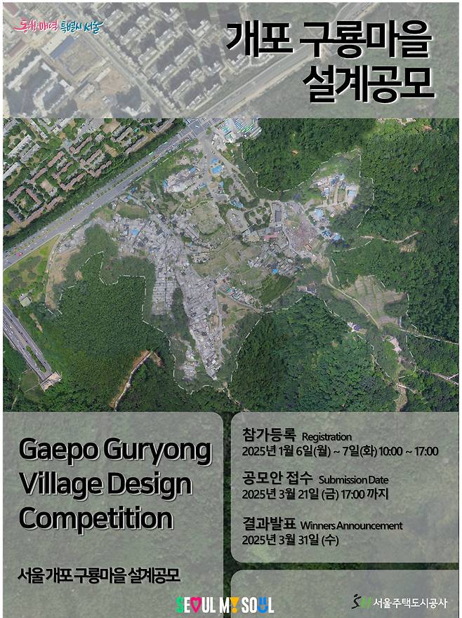 서울주택도시공사(SH공사)는 강남구 양재대로 478 일원에 위치한 개포 구룡마을 도시개발사업 기본 계획안과 건축 설계안을 공모한다고 31일 밝혔다.