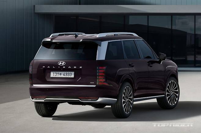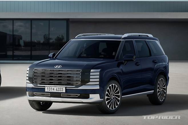 신형 팰리세이드 차체 크기는 전장 5060mm, 전폭 1980mm, 전고 1805mm, 휠베이스는 2970mm다. 이전 세대 모델 대비 전장은 65mm, 휠베이스는 70mm 늘어났다. 신형 팰리세이드 외관은 대형 전면부 주간주행등 및 그릴, 센터 포지셔닝 램프 등 존재감이 강조됐다.