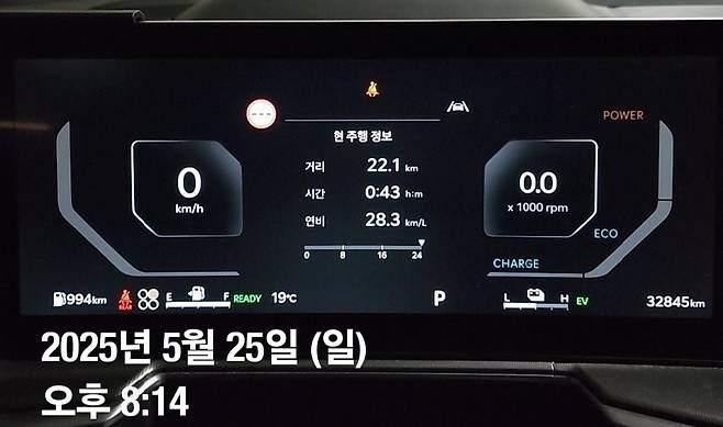 북부 간선==> 내부 순환 ==>서부간선 주행 했는데, 한산한 일요일 저녁 + 고지대에서 저지대로 운행이라서 그런가 연비 잘 나온 듯 합니다. (성인 3명 탑승 + 20kg 캐리어 1개)