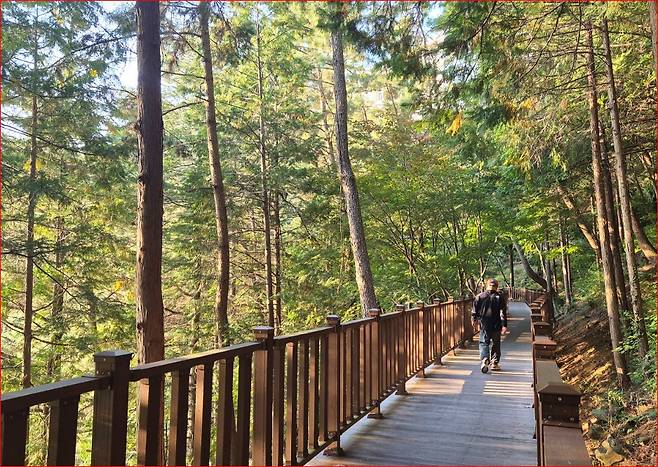 경사가 낮은 무장애 데크로드로 이루어져 휠체어나 유모차도 이용할 수 있어요. 단풍보다 햇빛이 주인공이 되는 늦가을에는 오후 4~5시 사이 걷는 것을 가장 추천합니다. 그때가 되면 호수 위로 황금빛 윤슬이 떠오르고, 숲 사이로 내려앉는 따뜻한 빛이 정말 아름답습니다.