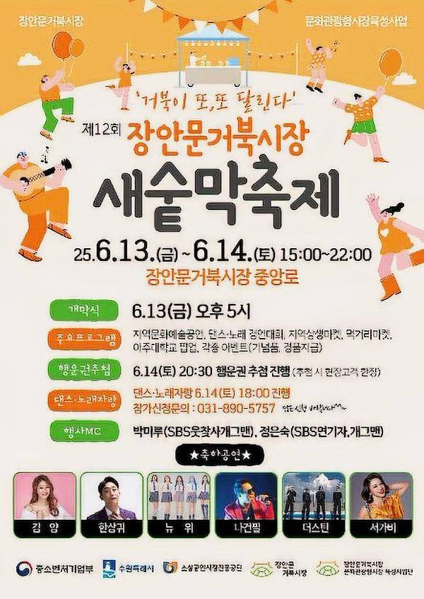 경기도 수원시 장안구에서 220년 역사를 자랑하는 장안문거북시장이 2025년 6월 13일부터 14일까지 이틀간 제12회 새숱막축제를 개최합니다.