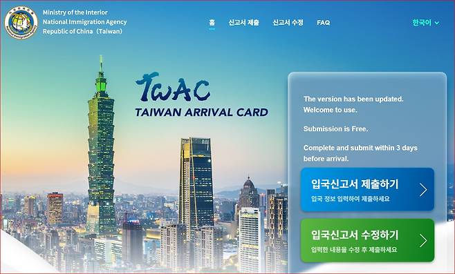 대만 온라인 입국신고서 작성방법