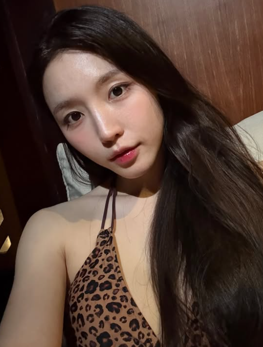호피무늬 비키니는 얇은 스트랩이 목선과 골반을 타고 흐르며, 상의는 브라톱 형태로 과감한 V컷을 연출했습니다. 복근이 그대로 드러나는 타이트한 핏과 함께 성숙한 여성미가 강조된 룩이었습니다. 긴 머리는 물결처럼 흘렀고, 조명 아래 더욱 또렷해진 피부 톤이 전체 분위기를 고급스럽게 마무리했습니다.