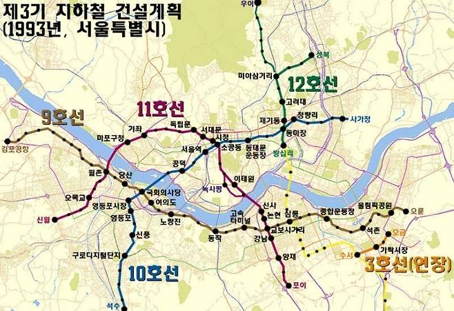 '덕후'라는 용어가 생겨나기도 한참 전, 철도 매니아들의 가장 큰 관심은 서울 3기 지하철 사업이 언제 재개되느냐 하는 것이었습니다. 서울시가 1993년 3기 지하철 건설계획을 발표했지만, 1997년 외환위기가 터지면서 9호선을 제외한 나머지 10, 11, 12호선이 백지화됐기 때문입니다. 10호선부터 재개될 것이다, 노선에도 일부 변경이 있을거다, 철도 매니아들은 저마다의 논리로 서울시 지도에 지하철 노선을 긋고 다른 매니아들을 설득하곤 했습니다.