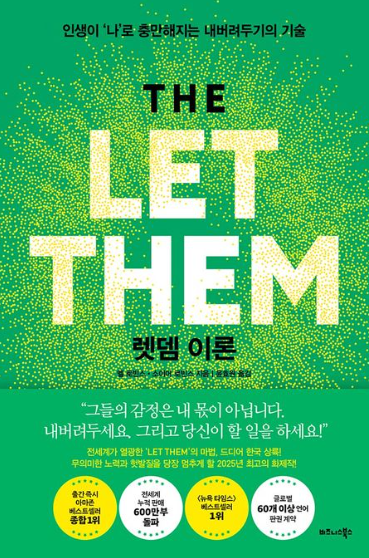 멜 로빈스의 신작 《렛뎀 이론》은 말 그대로 Let Them, 즉 “그들을 내버려둬라”라는 메시지를 중심으로 합니다. 얼핏 들으면 디즈니 영화 <겨울왕국>의 “Let it go”랑 비슷하게 느껴지죠? 그런데 두 단어는 확실히 달라요. Let it go가 “그냥 잊어버려, 신경 끄자”에 가깝다면, Let them은 “남들이 뭐라 하든 나는 내 길을 간다”는, 훨씬 더 주체적인 선언이에요.