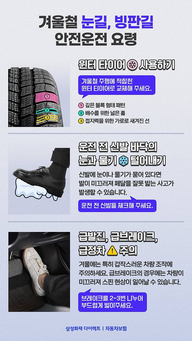 자칫 사고가 나기 쉬운 겨울철 운전. 오늘 소개해 드린 겨울철 안전운전 요령을 꼭 숙지하셔서 안전하고 따뜻한 겨울을 보내시길 바랍니다!