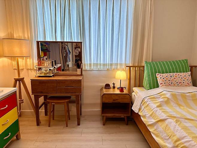 한 번에 스타일을 바꾸는 건 여간 어려운 일이 아니니, 조금씩 가구를 교체하거나 컬러감이 있는 패브릭을 활용하고, 가지고 있는 가구를 리폼하며 분위기 전환을 해주었습니다.