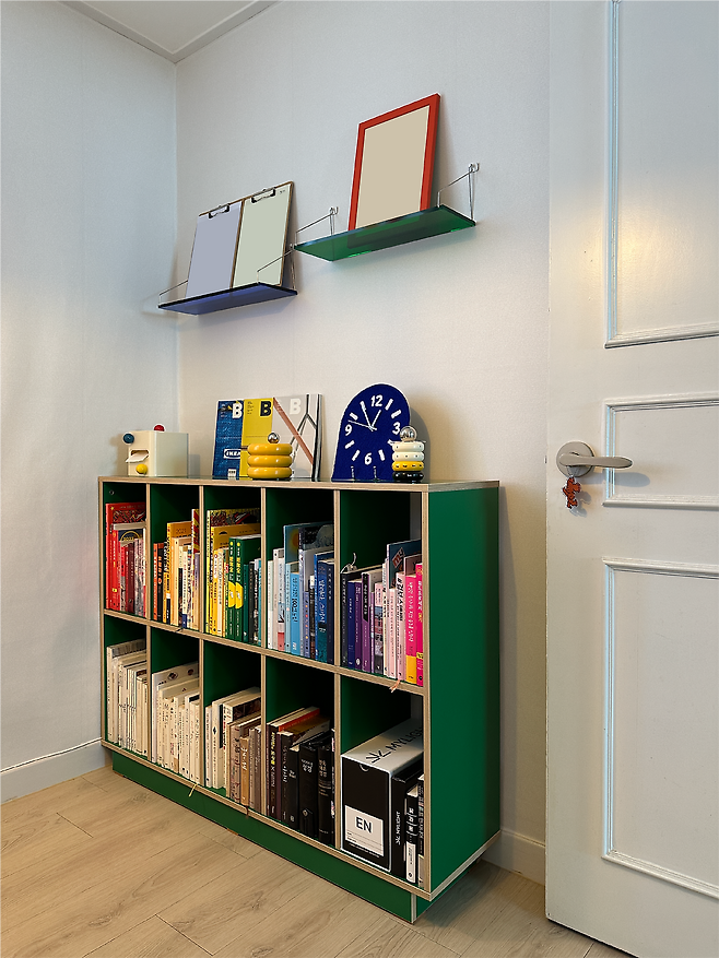 이 경험은 제게 트렌드를 쫓을 때보다 취향을 과감하게 드러냈을 때 스타일이 생기고 그걸 많은 사람이 알아봐 준다는 교훈을 주기도 했습니다. 또 마침 공부방을 열게 되어 아이들의 부모님도 이곳을 방문하셨는데, 이 동화책 선반을 아주 좋아해 주시더라고요. 현재는 개인적으로 동화책을 집필하는 중이라 이 선반에 제가 만든 동화책을 올리는 게 꿈이자 목표입니다.
