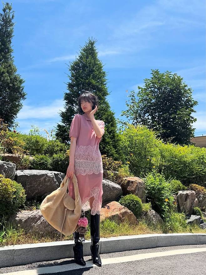 #나나 #나나패션 #나나핑크드레스 #핑크레이스 #여름코디 #로맨틱룩 #Fendi스타일 #상큼한여름룩 #스타패션 #레이스포인트 #빅백코디