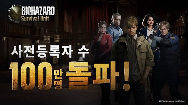 조이시티(대표 조성원)는 글로벌 인기 IP인 '바이오하자드'를 활용한 모바일 전략 게임 '바이오하자드 서바이벌 유닛(BIOHAZARD Survival Unit)'의 사전 등록자 수가 100만명을 돌파했다고 8일 밝혔다.