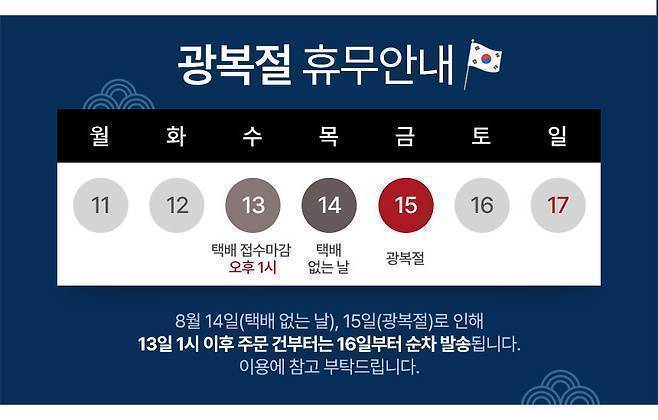 ⛔8/15 광복절 택배 휴무일을