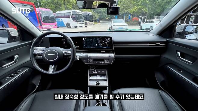 근데 그에 비해서 이 차량은 3세대 플랫폼으로 바뀌기도 했고, 그러다 보니까 승차감에서는 굉장히 많은 개선이 이루어진 것 같습니다. 이전 세대 코나랑 비교했을 때도 굉장히 많이 부드러워졌고, 이 위급 차량이랑 비교하면 좀 그럴 수도 있긴 한데... 살짝 투싼 같은 느낌도 어느 정도는 저는 받았던 것 같아요. 한 등급 위의 승차감을 제공한다고 봐도 될 것 같아요.
