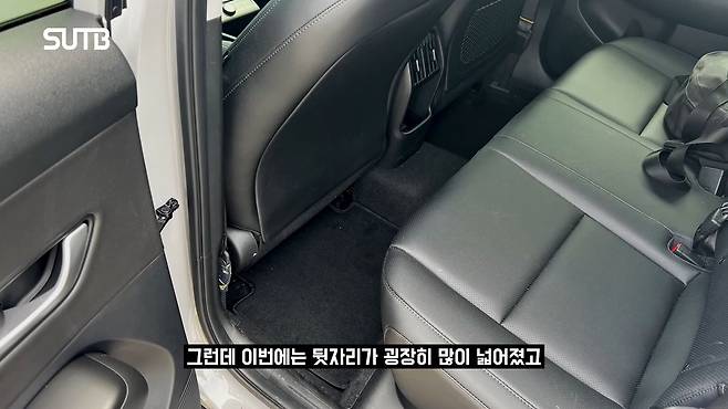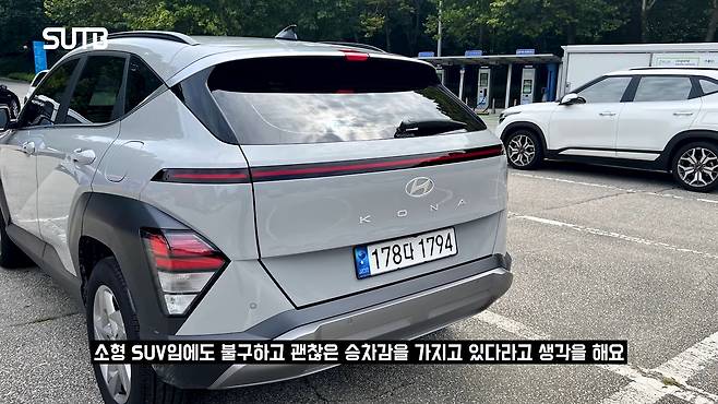 또 장점으로 실내 공간을 좀 말씀을 드리고 싶은데요. 이전 세대 코나는 뒷자리가 그냥 없는 수준이라고 많이 알고 계셨잖아요. 근데 이번에는 뒷자리가 굉장히 많이 넓어졌고 최근에 포항으로 여행을 한 번 간 적이 있었어요. 4명이 이 한 차를 다 이용했었고, 저도 뒷자리에 앉아 봤는데 레그룸이나 이런 것도 많이 확보가 돼 있더라고요. 물론 이제 중형까지의 레그룸은 아니고 한 준중형 세단 정도의 레그룸은 확보가 돼 있는 것 같았어요.
