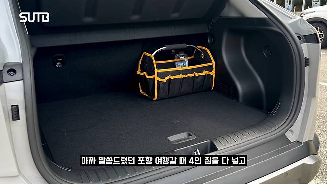 뒤쪽 트렁크 같은 경우도 아까 말씀드렸던 포항 여행 갈 때 4인 짐을 다 넣고 공통으로 사용하는 짐들... 구명조끼라든지, 캠핑 장비나 이런 것도 살짝 챙겨갔었거든요. 그럼에도 불구하고 공간이 많이 남아있었다고 말씀드릴 수 있을 것 같습니다. 플랫폼이 바뀌면서 공간이 넓어진 것 같습니다.