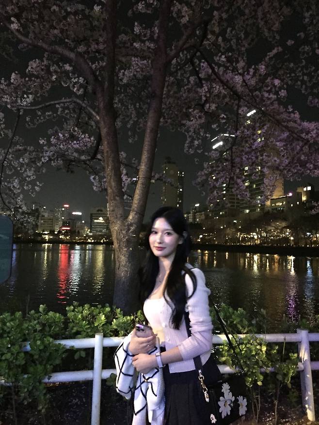 연핑크 나시+가디건과 바지를 입어도 예쁘지만 꽃놀이인 만큼