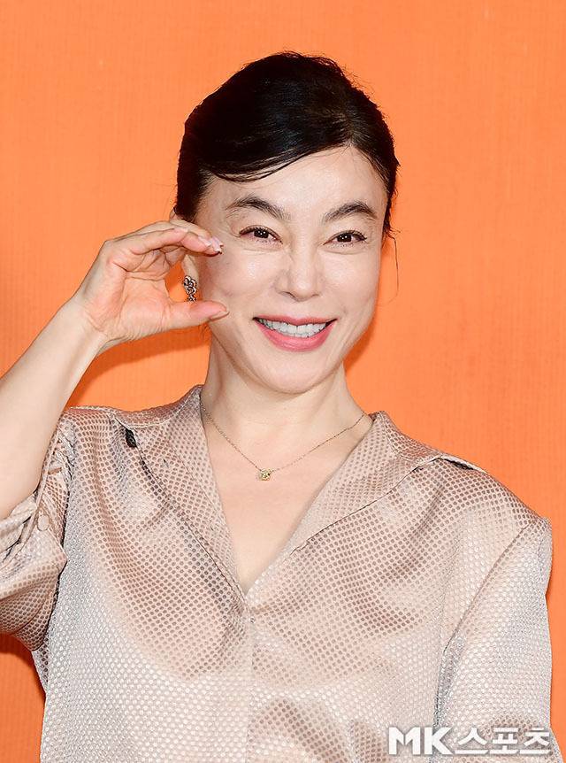 최화정은 은은한 광택감이 감도는 샴페인 베이지 컬러의 셋업 드레스를 선택해 고급스럽고 클래식한 분위기를 연출했습니다.