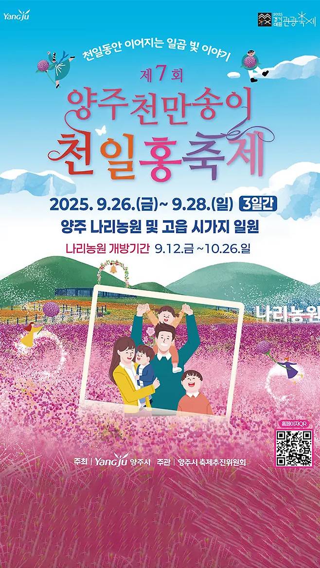 올해 제11회를 맞은 천만송이 천일홍 축제가 경기도가 인증한 ‘2025 경기대표관광축제’로 선정되며, 양주는 ‘가을엔 양주로’라는 슬로건 아래 관광도시로 도약을 선언했습니다.