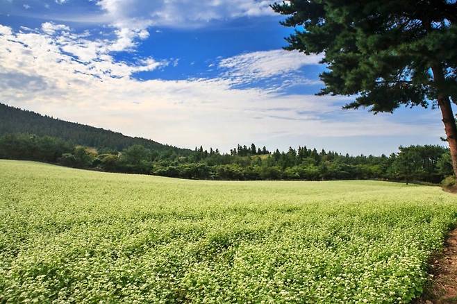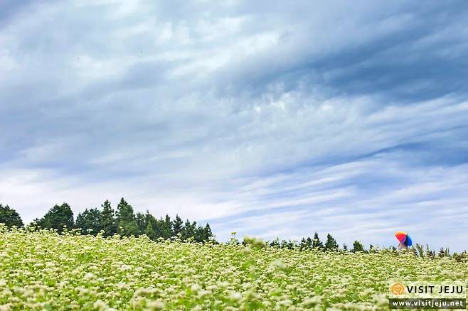 북쪽으로는 제주 바다, 남쪽으로는 한라산이 펼쳐지는 풍경 속에 위치한 이곳은 계절마다 다른 색을 입는다. 봄과 여름엔 흰 메밀꽃이 장관을 이루고, 겨울과 초봄에는 싱그러운 청보리와 갈대가 어우러져 색다른 분위기를 연출한다.