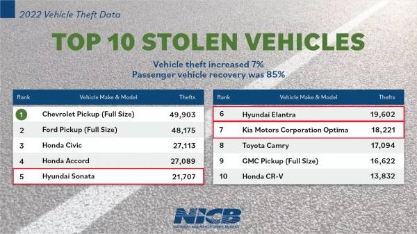 미국 국가보험범죄수사국(National Insurance Crime Bureau)은 “현대차와 기아차의 회수율이 87~95%에 달한다”며 "상당수 차량이 일회적 즐거움의 목적으로 도난 당한 횟수가 상대적으로 많다"고 언급했다. 틱톡 영상 확산에 따른 여파다.