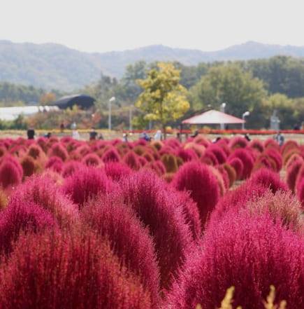 마지막으로는 도심에서 쉽게 찾아보기 힘든 ‘댑싸리’의 매력을 제대로 느낄 수 있는 양주 나리 공원입니다. 9월부터 초록빛 댑싸리가 점점 붉게 물들기 시작해 10월 즈음에 짙고 오묘한 핑크빛을 발산하는데요.