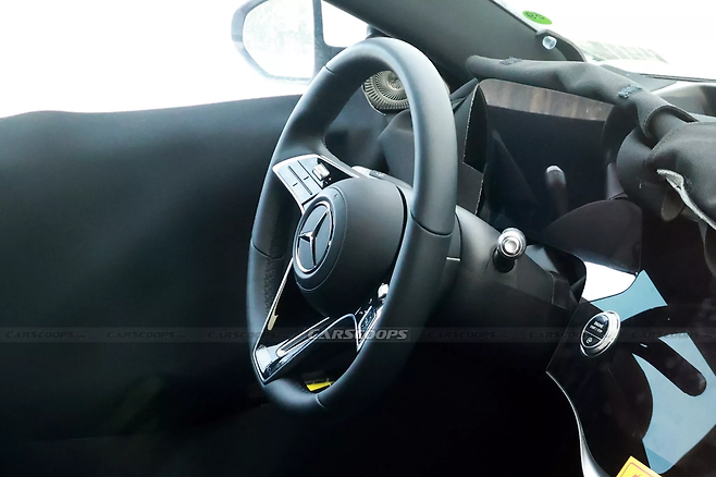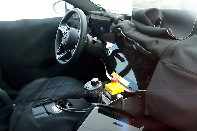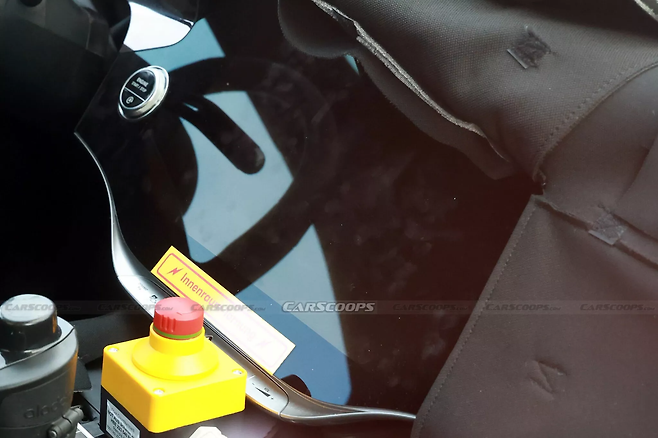 이번 이미지에서는 대시보드 전체가 명확히 보이진 않지만, 화면이 A필러에서 A필러까지 이어진 모습이 확인됐다. 또한, 계기판 상단의 디자인이 전통적인 계기판 커버 형태에서 벗어나 평평하게 바뀌었으며, 시동 버튼은 센터 콘솔 상단 왼쪽 하단 코너에 물리적으로 장착된 것도 눈에 띈다.